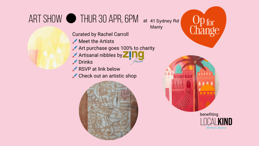 We’ll also have drinks and nibbles, and you get to see a wonderful artistic op shop: Op for Change.